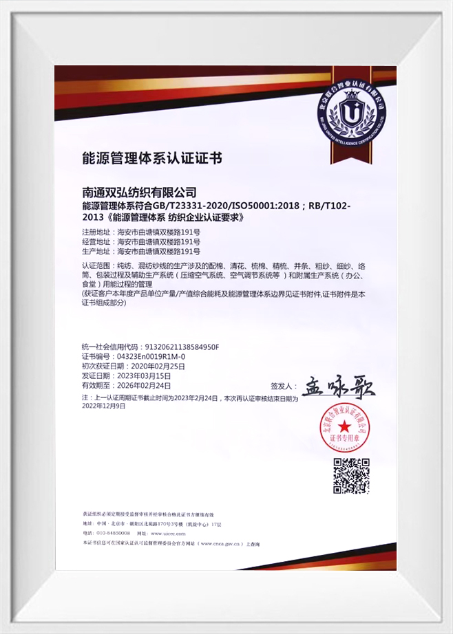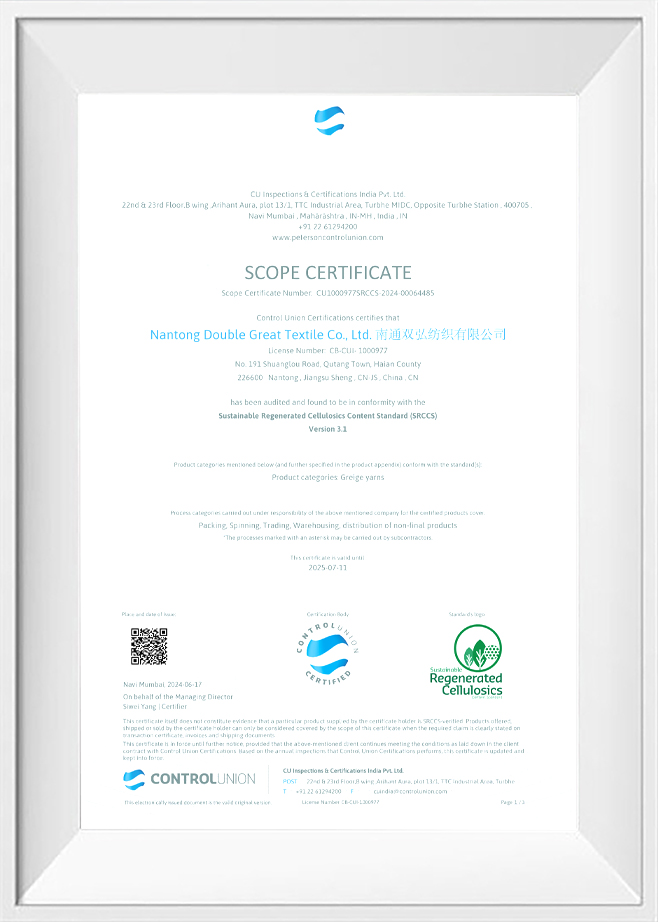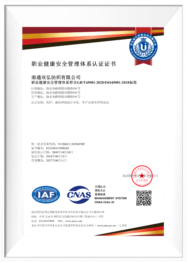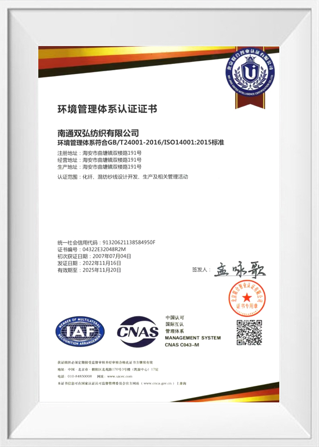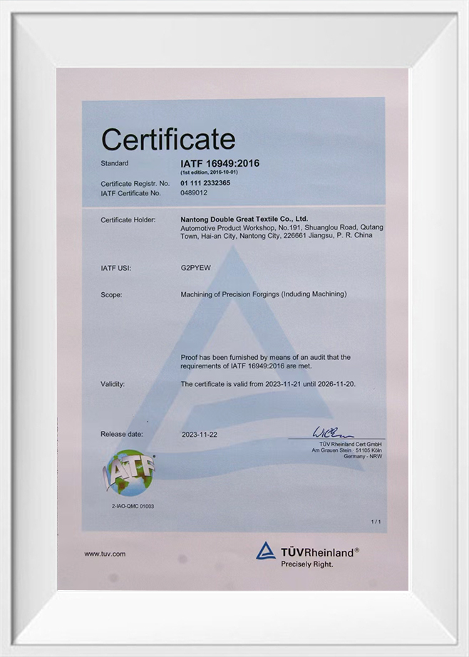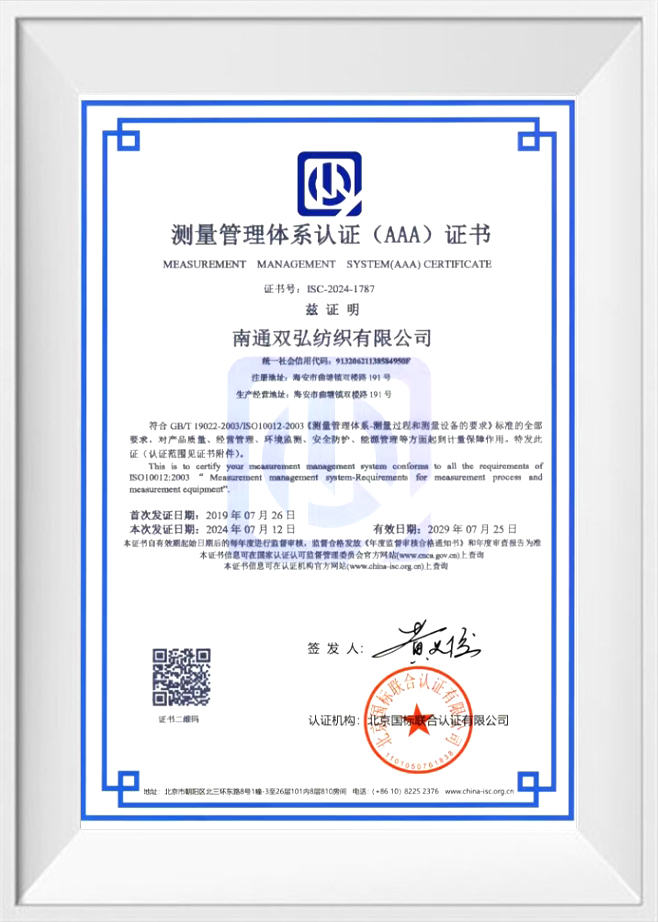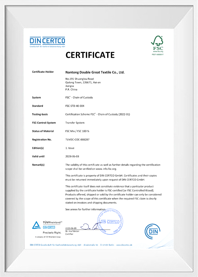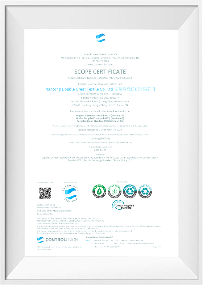 관련 인증 - Nantong Double Great Textile Co.,Ltd.