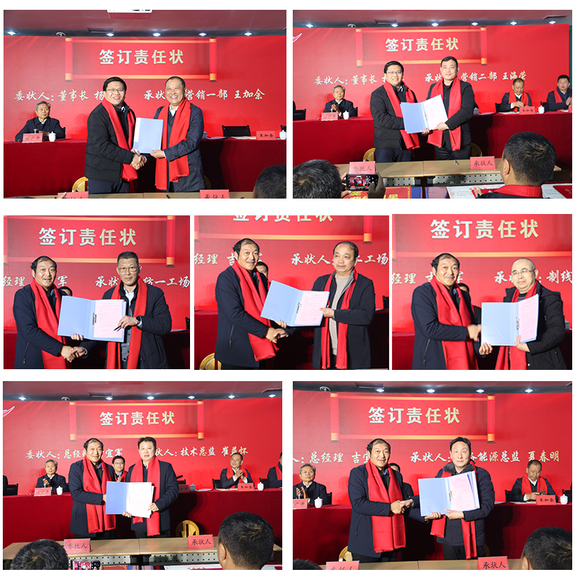 회의에서 마케팅 부서 책임자는 Yang Yang 회장과 마케팅 대상 책임 서한에 서명했으며 제작 워크샵, 기술, 장비 및 기타 부서의 책임자는 각각 Ji Yijun 제너럴 매니저와 함께 생산 작업 및 주요 작업 대상 책임 서한에 서명했습니다.