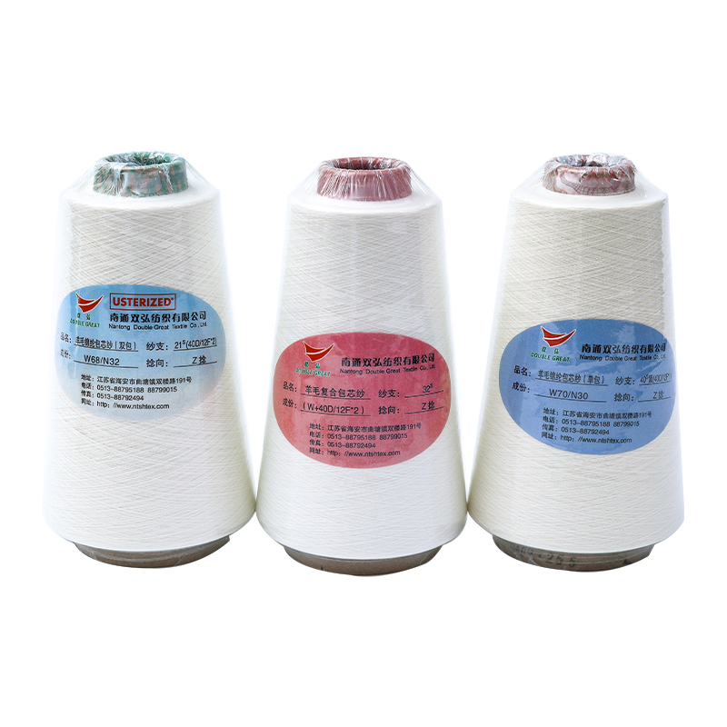 Wool Core-Spun Yarn : 양모를 특징으로하는이 일련의 제품의 포괄적 인 성능 이점을 보유하면서 따뜻한 보존 및 탄력성이 뛰어납니다.